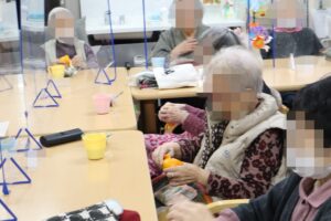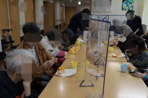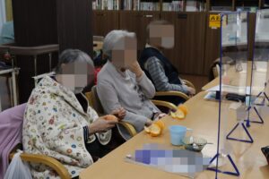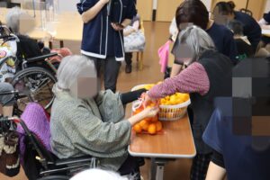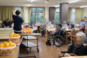 ある日のデイビサースで、みかん袋詰め大会を行いました。 2分間で数多く袋詰めできたチームの勝利です。 1回目では「速さ」重視でしたが、2回目は「数」重視で 小さめのみかんを上手く詰めて優勝チームはなんと47個、 2位のチームは45個、3位のチームは42個と白熱した戦いが見られました。