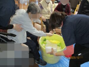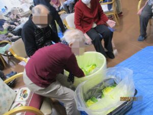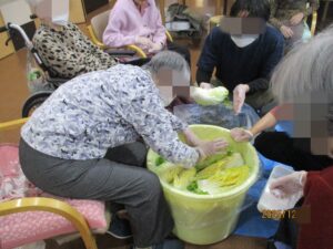 ウェルネステラス深谷では先日、利用者様と一緒に白菜を漬けました。