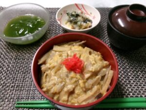 - ごぼうと油揚げの卵丼