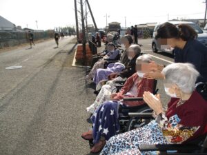 ランナーをご利用者の皆さんと、沿道にて応援しました!