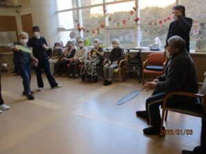 年始には羽根つきと書初め大会を行いました。