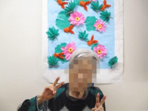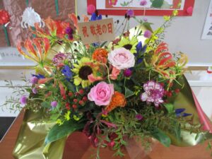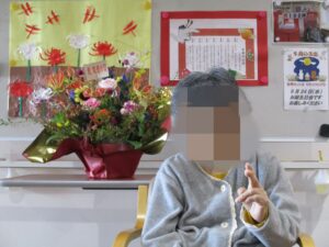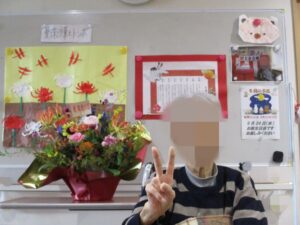 利用者様の素敵な作品と、お取引様からいただきました秋色花かごの前で写真撮影会をしました。